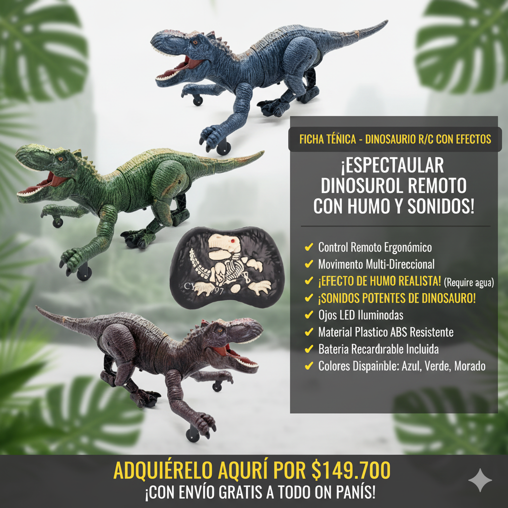 Dinosaurio a Control Remoto 2.4G con Humo, Luces y Sonidos