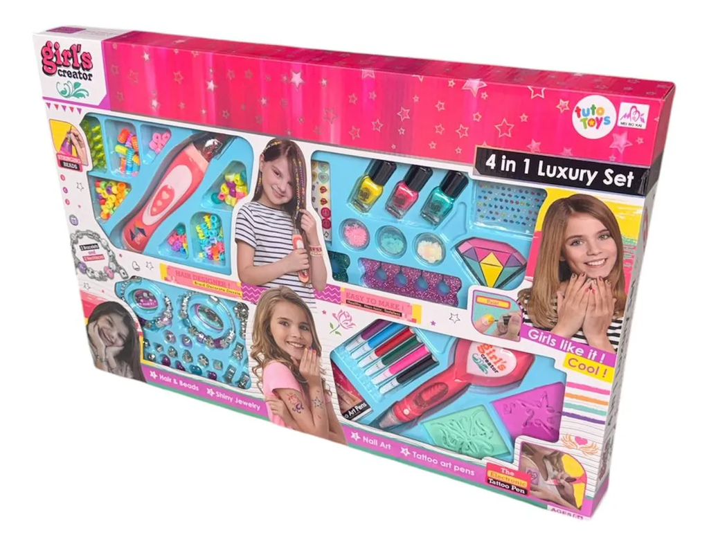 Set De Belleza 4 En 1 Uñas Bisutería Y Tatuajes Niñas